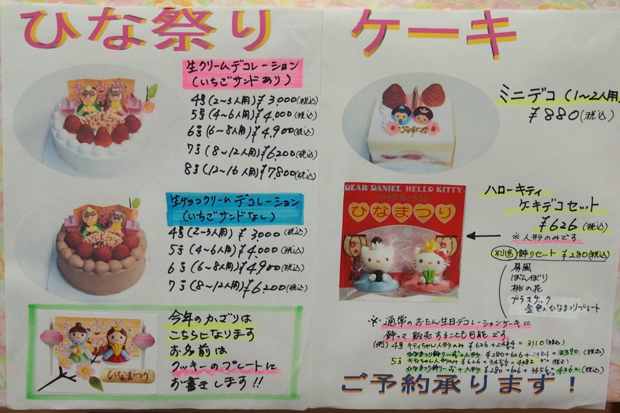 ひな祭りケーキ予約のご案内